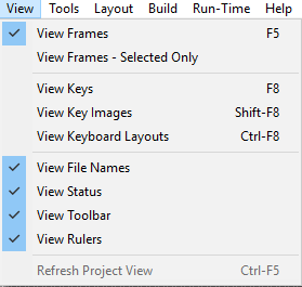 When View Frames is On, the frames around the keys is shown - for more details on the frames, see Panel Display, Keys.