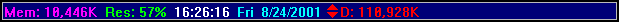 The information panel appears below the currently displayed panels and shows date, time, system resources, etc. as chosen for display in My-T-Soft Setup. You may rearrange the order of the information shown by clicking on any item. This will move that item to first place on the left in the information panel. If you have more than one hard-drive or a CD-ROM drive, or if you are operating on a Network , use the up-and-down arrows to display the current free space of each drive.